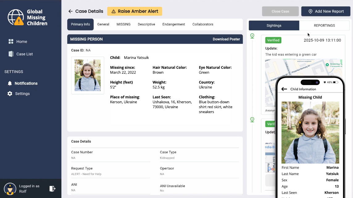 A secure, cloud-based platform and app, combining AI, blockchain, geo-alerts, and real-time collaboration to connect the world to find and reunite missing children with their families.